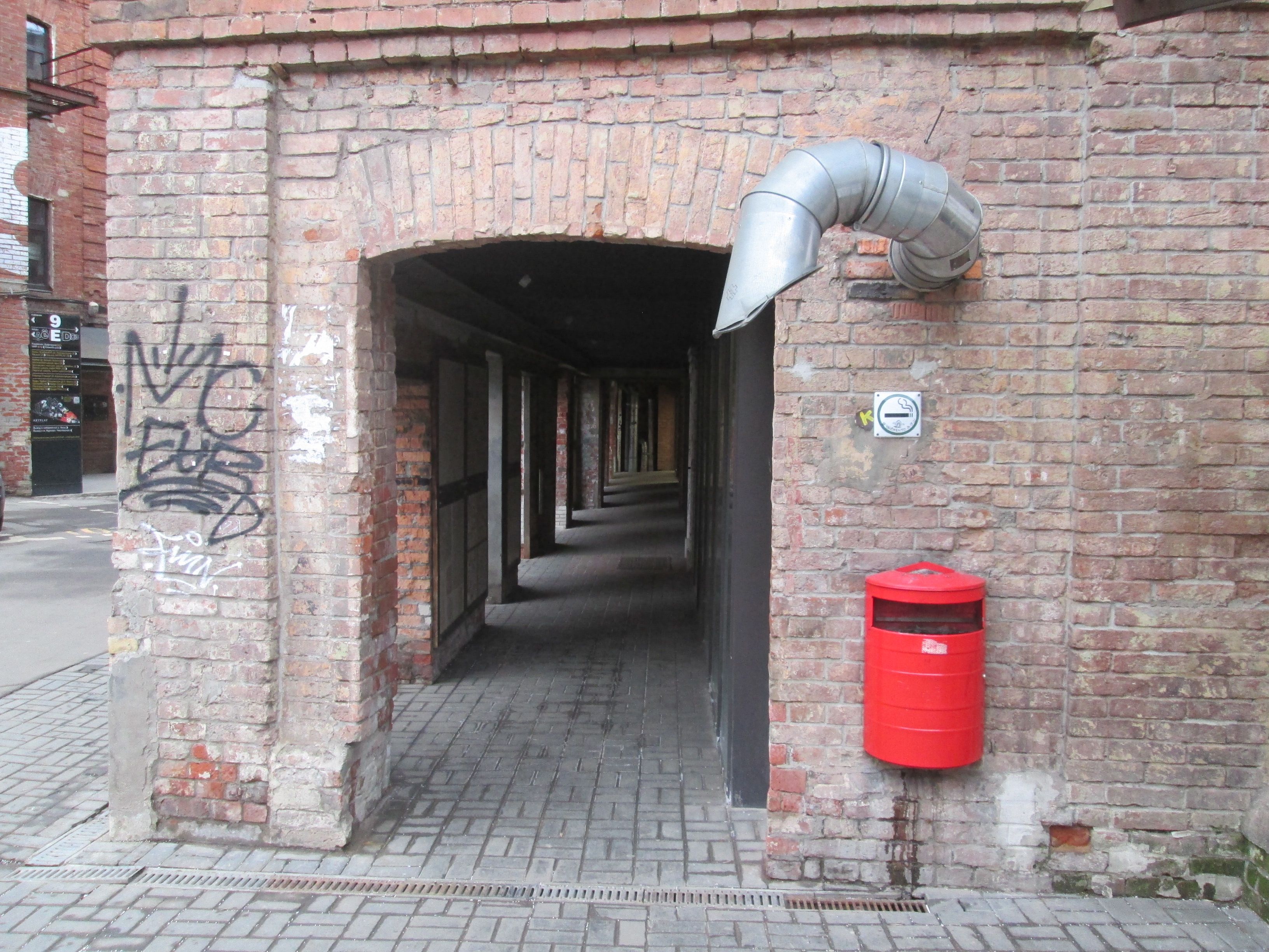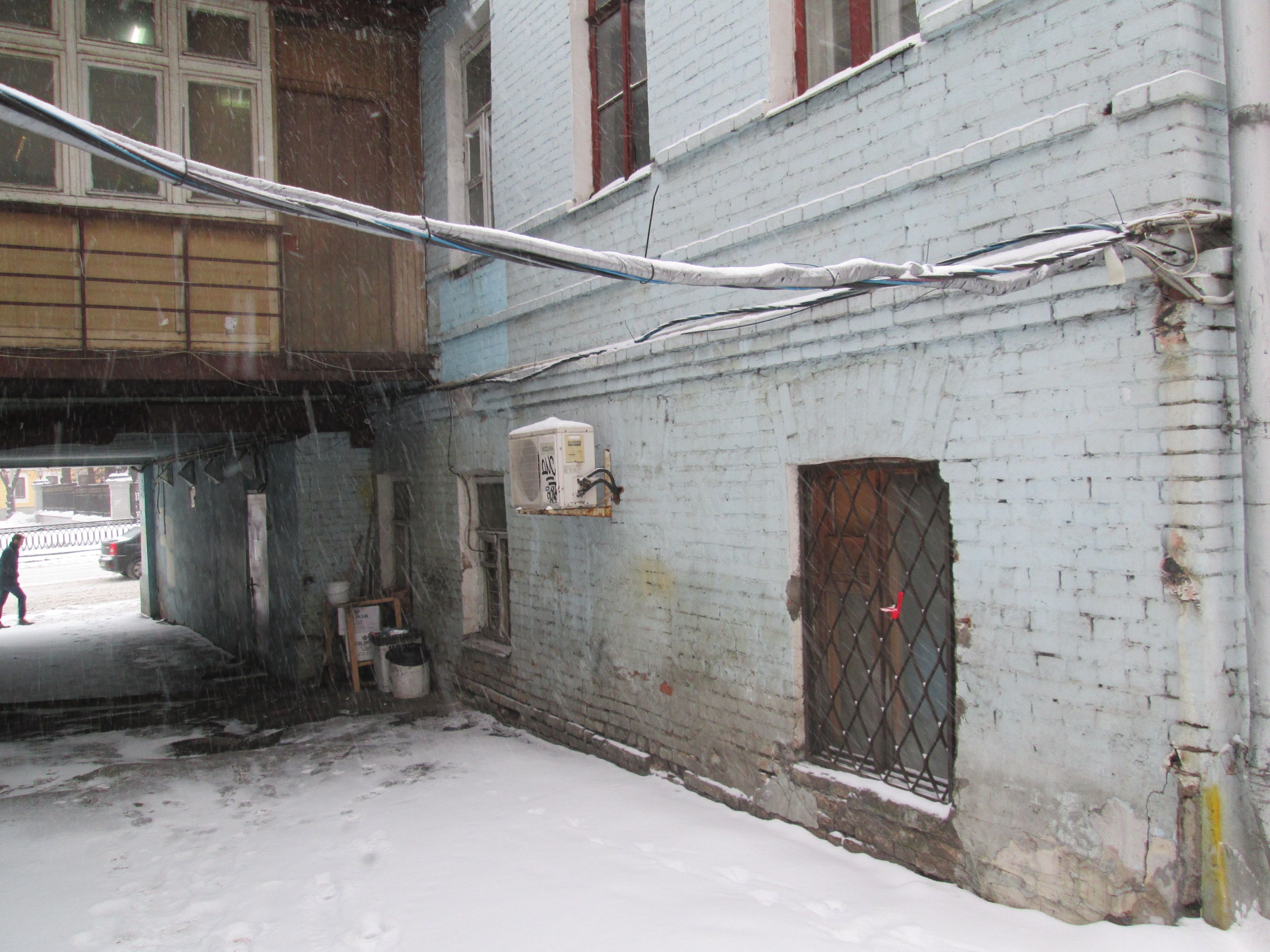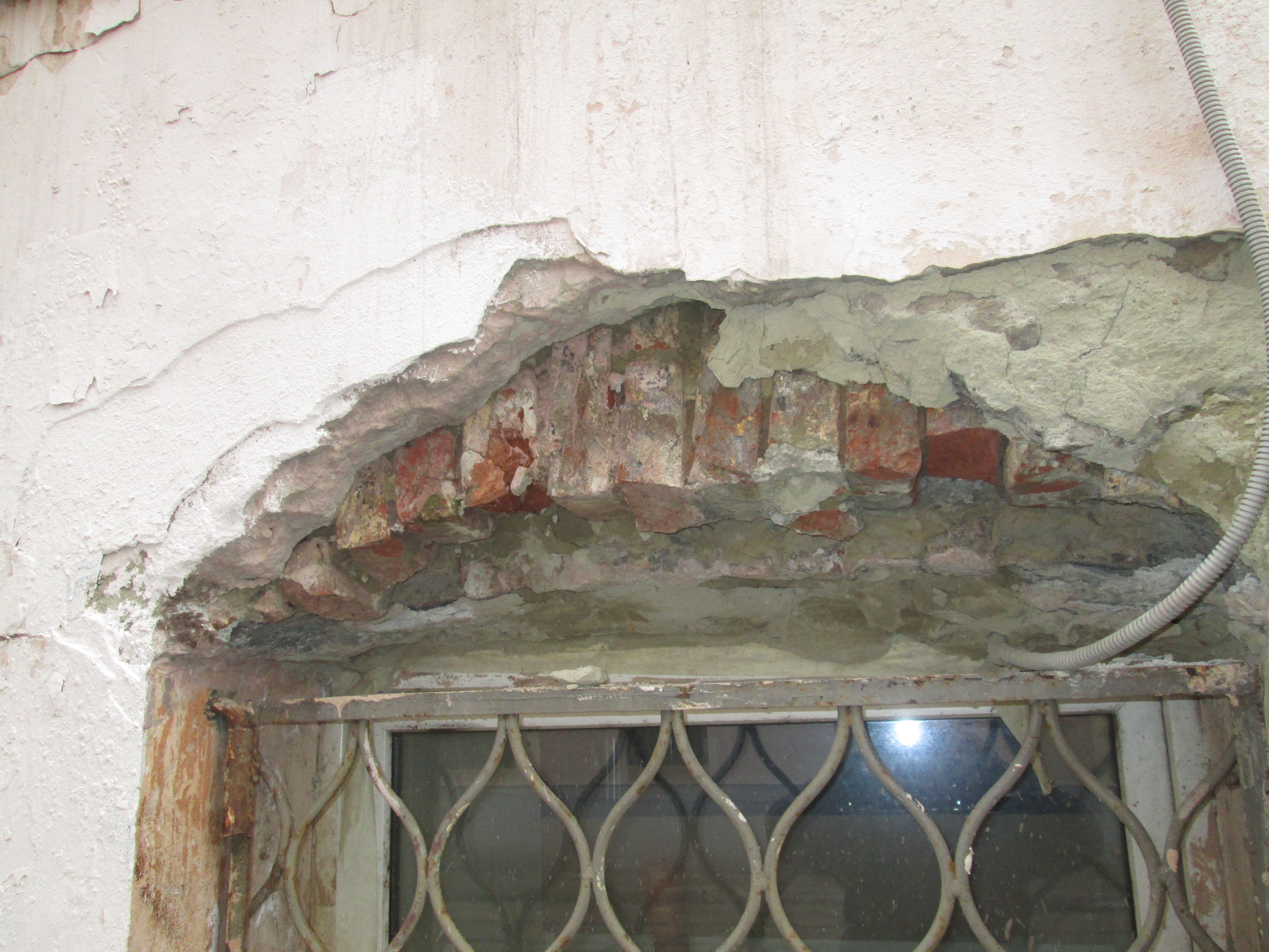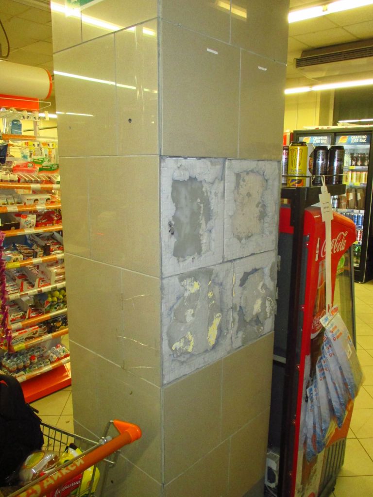 А вот как устроены колонны старых зданий изнутри. Внутри оказался кирпич, а вовсе не монолитный железобетон. Это задняя часть ДК Сталина на ул. Сталина, которая сейчас входит в состав Измайловской площади.
