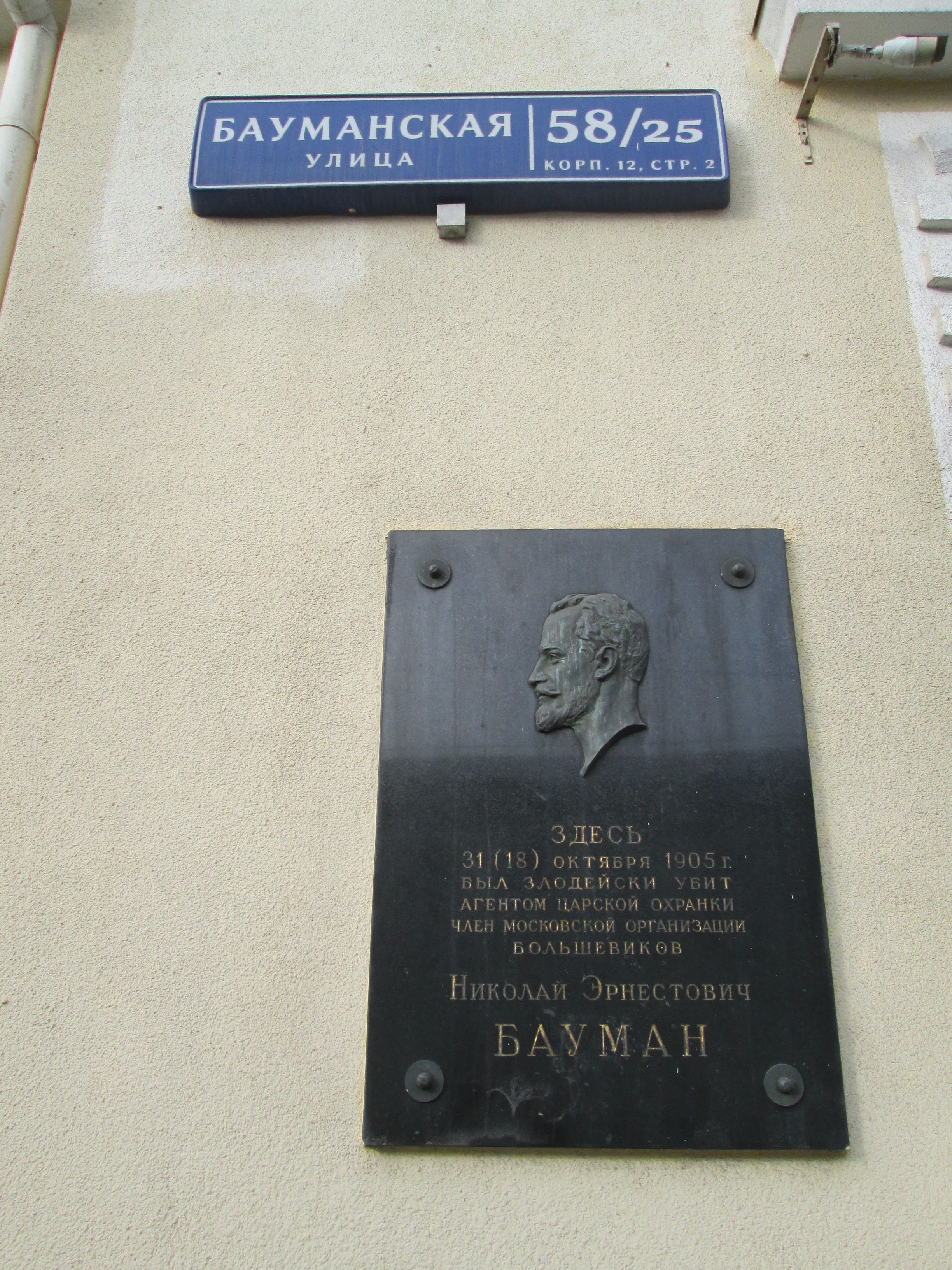 Интересно, что Колечка Бауман нифига не еврей, а самый что ни на есть немец. Никакого участия в Революции принять не успел, никакого вклада в неё не внёс. НО, поскольку никакими гнусностями он запятнан не был, то стали его использовать в качестве иконы. Его пышно похоронили и всё вокруг АШАН-а Денисовского переулка стало имени его. От учебного заведения и улицы, до станции метро.