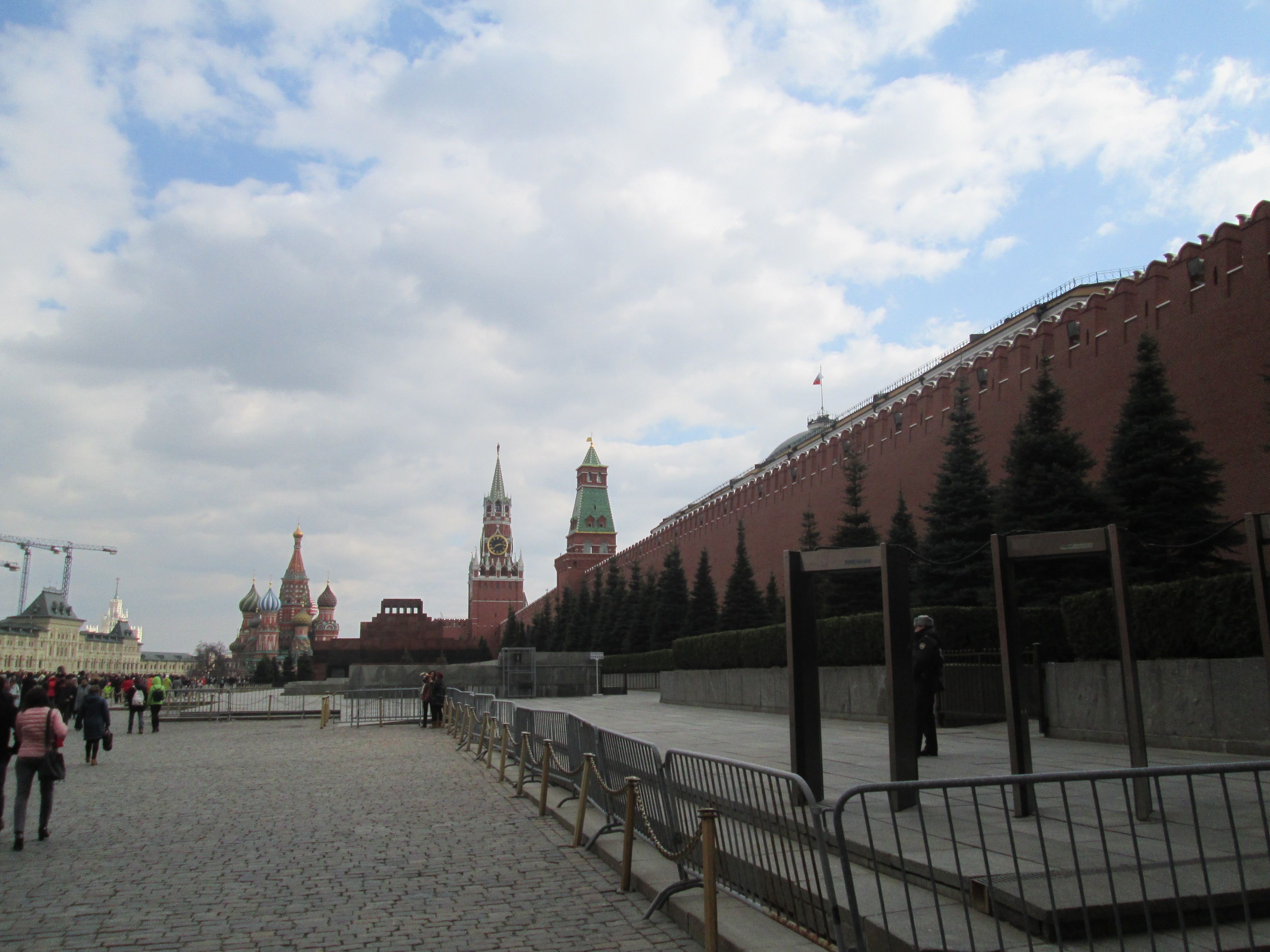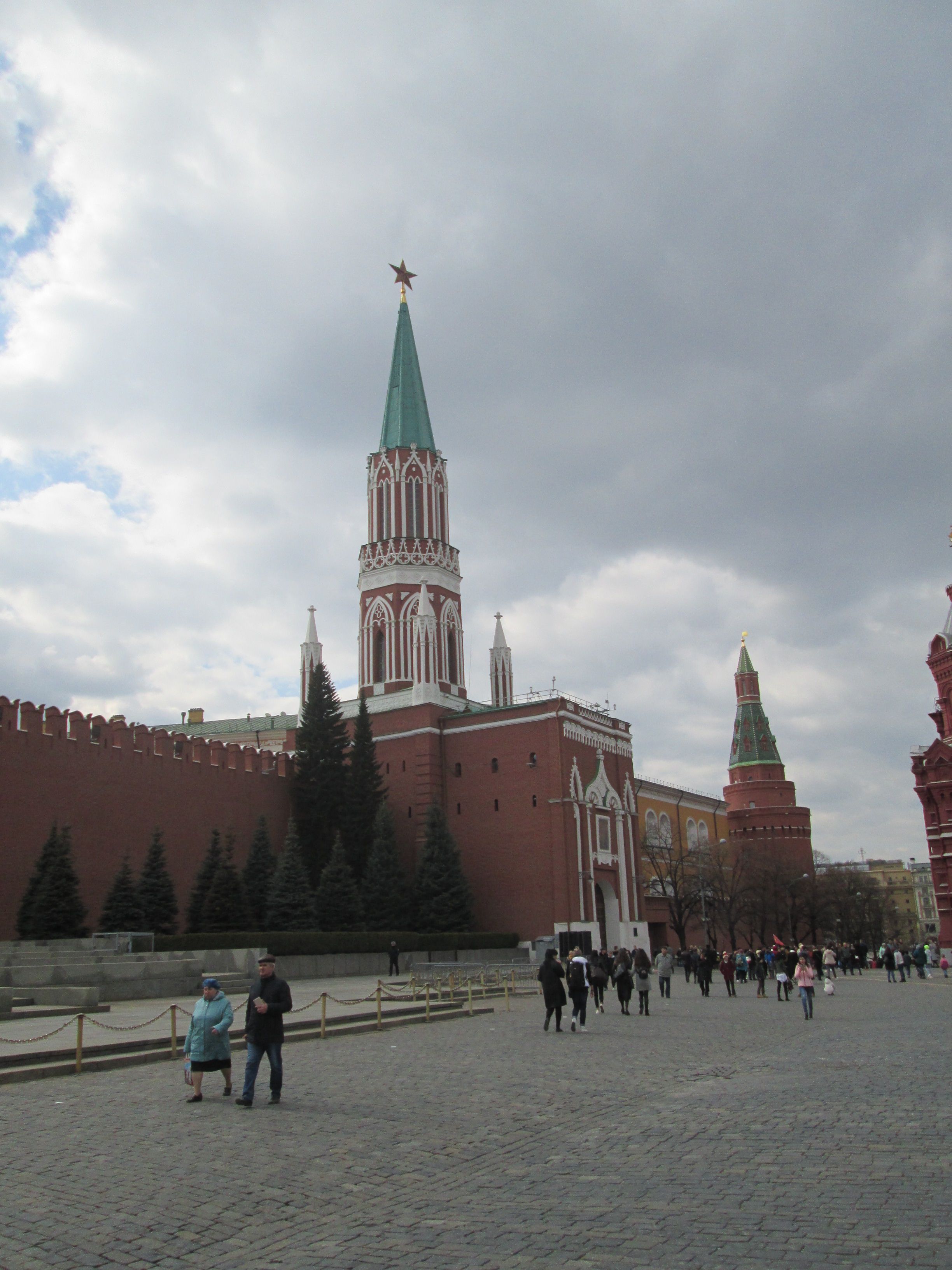 — Ну…Красную площадь все видели. Покажу только то, что к фильму относится.Тем не менее несколько фото всё же дам. Это Спасская башня. Тут выпускают пешеходов с экскурсии по Кремлю. Главнокомандующий Жириновский как раз отсюда выедет. Шойгу в реальности выезжает из Никольской, а Жириновского выпустим из Спасской. Что бы они в реальности не пересекались. У нас всё же комедия, местами напоминающая «Иван Василича». Камера. Звон курантов. Дын-дын-дын-дын-дын-дынн! Следующее включение камеры: Ведём её справа налево от Мавзлея. Турникеты снимем, всё тут съёмное. Штырь опускаемый.Здесь машина с Жириновским (ах, только б он не помер до съёмок, тьфу-тьфу-тьфу). Жириновский едет, смотрит вокруг и думает: — Здорово-то как, что дождя нет! Смотрит слегка вправо. В реальности Шойгу выезжает через Никольскую башню. Отсюда. Вот она издалека: