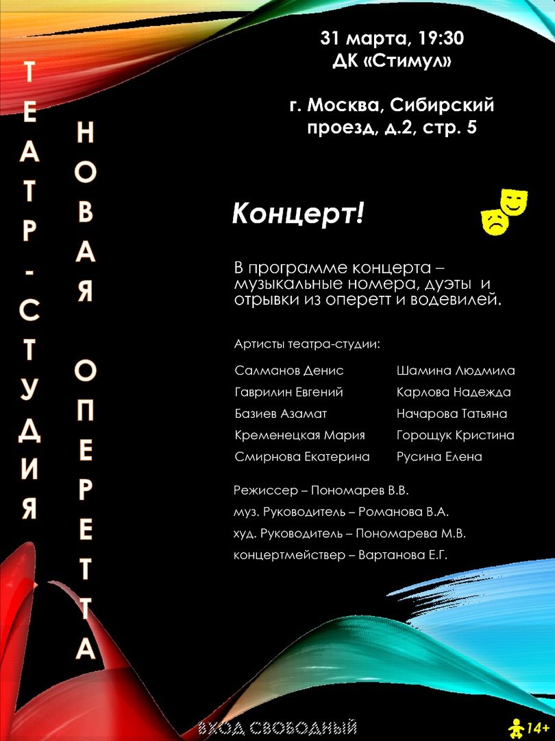 PS Позже выяснилось, что тогда 31 марта 2019 года в ДК «Стимул» театр-студия «Новая оперетта» давал свой первый вокально-театральный концерт.