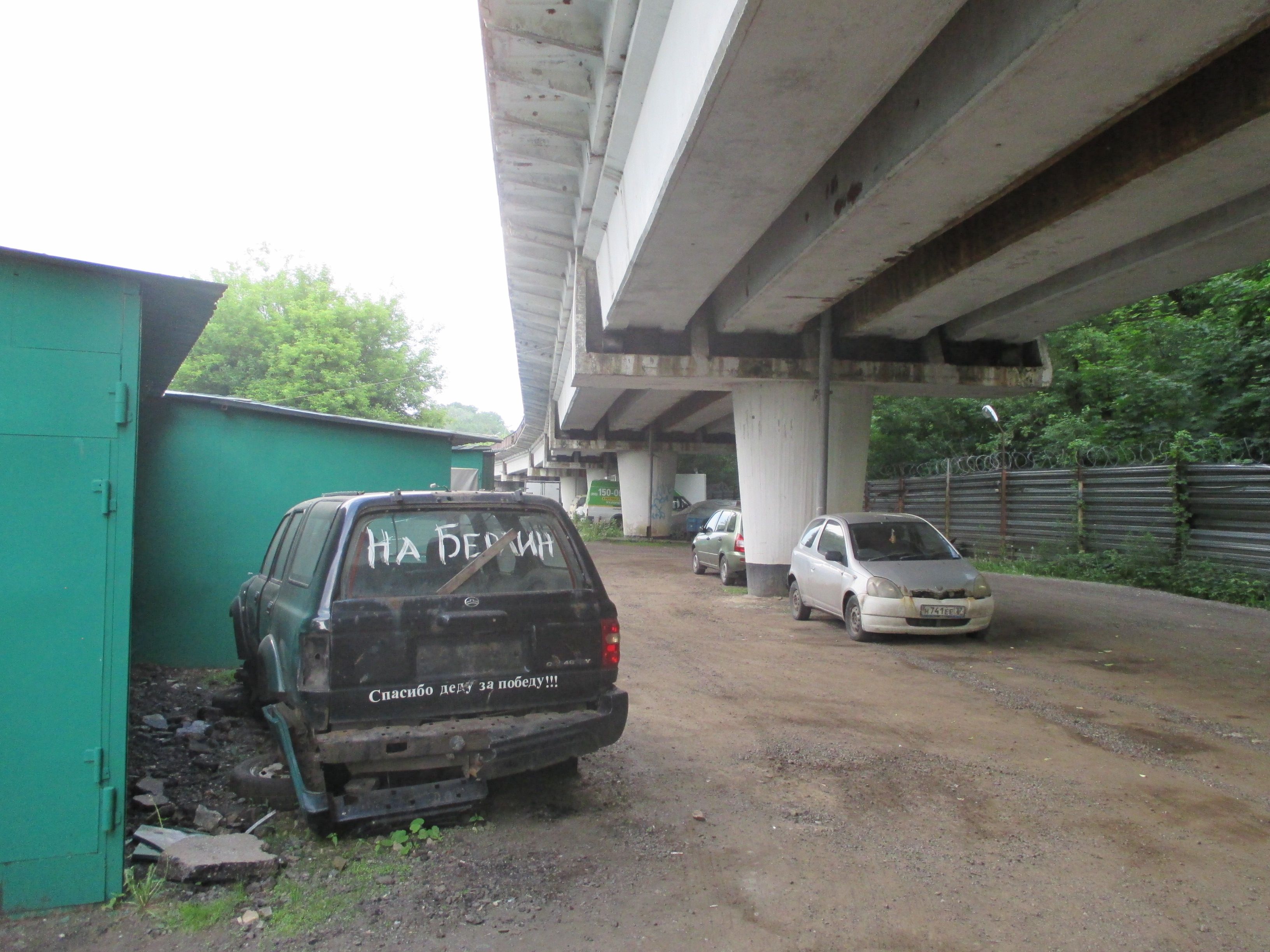 Это метромост, под которым тихо гниёт легендарный джЫп «На Берлин» «Спасибо деду за победу!!!».