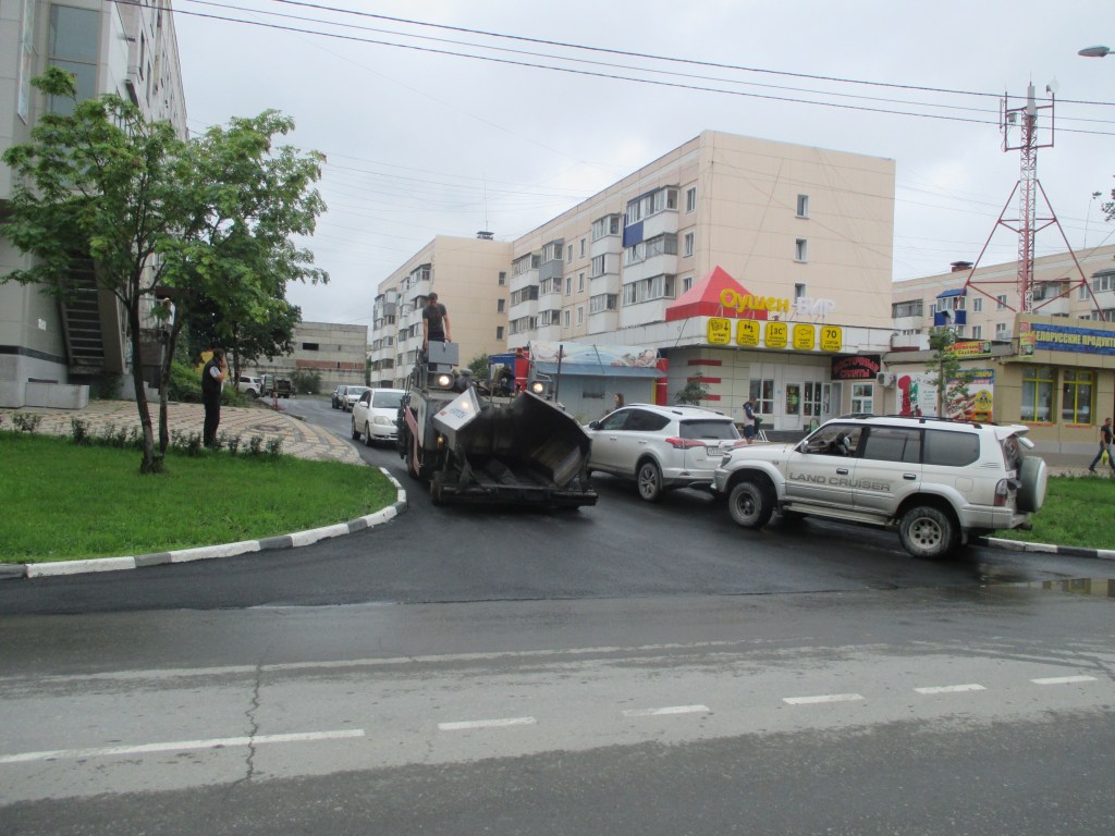 А вот и тот ремонт дороги в Синегорье, который местные обсуждали и называли цифры в миллиарды. На Итурупе, к слову, тоже ремонт дорог, асфальт (В кои веки! Его даже при СССР не было). То есть острова Японии отдавать никто не собирается.