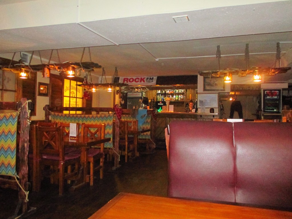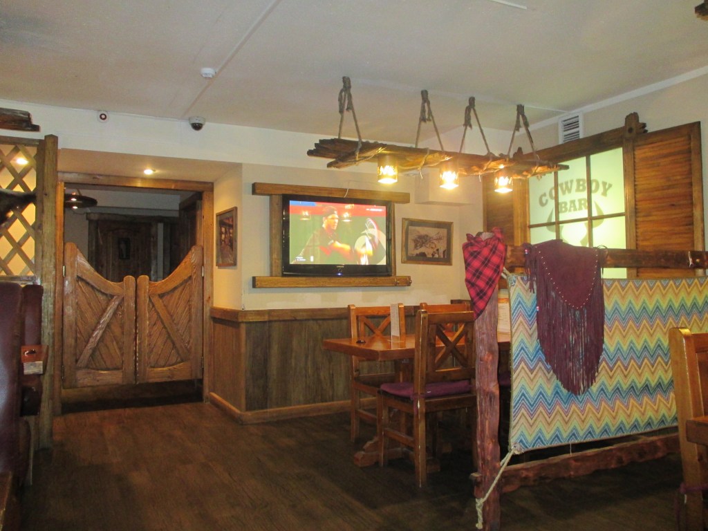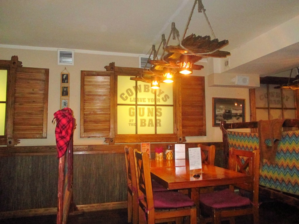 Вот, например, бар «Ковбой». Тут бизнес-ланч есть. С фиксированной ценой в 470 р. Это Сахалин, а не Москва. На 5-ой Первомайской, 25 в «Окошках» бизнес стоит 199 р. Тут же смело крутите 2Х.