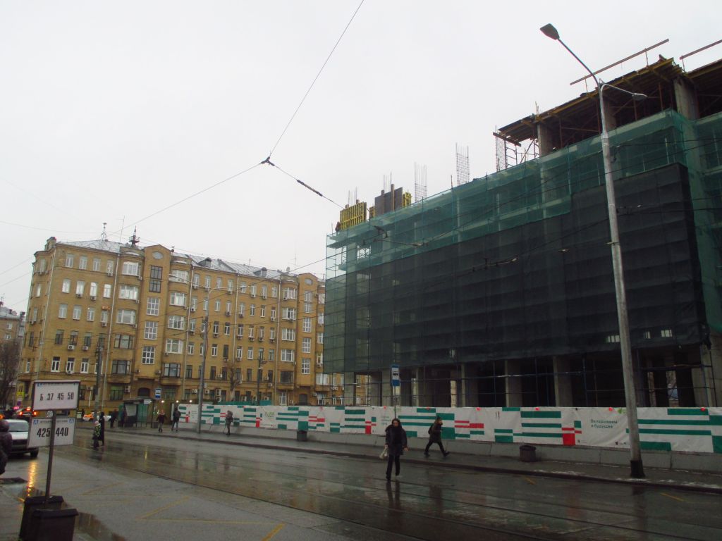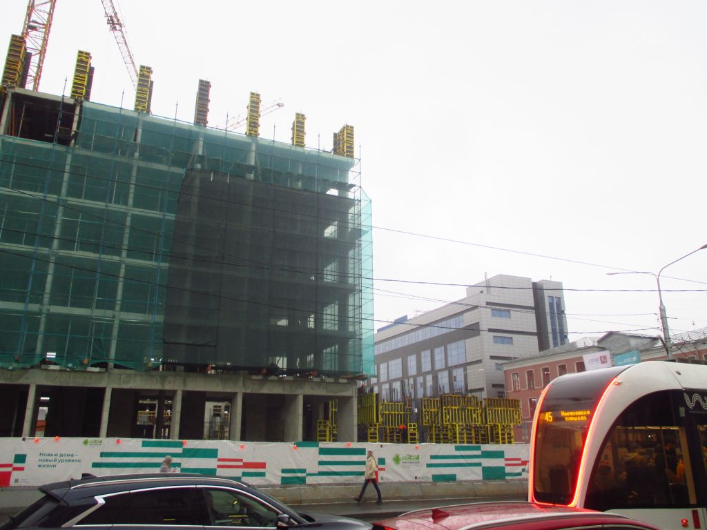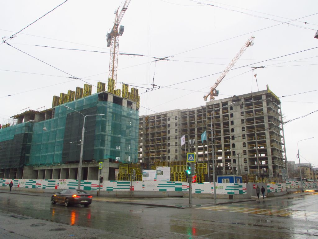 Помните я год назад показывал Бауманскую рядом с Аптекарским, где на пустырь снег складировали? Этот пустырь остался от рухнувшего в 2006-м году Басманного рынка. Так там сейчас новостройка выросла. Под реновацию.