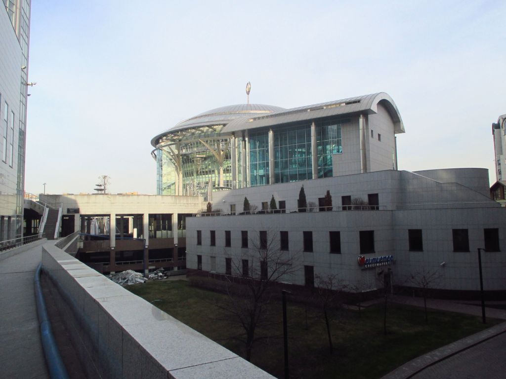 Здание ещё постройки СССР, но все окна целы. Охрана внутри есть. Я зашёл. Не пустили. Молодцы!
